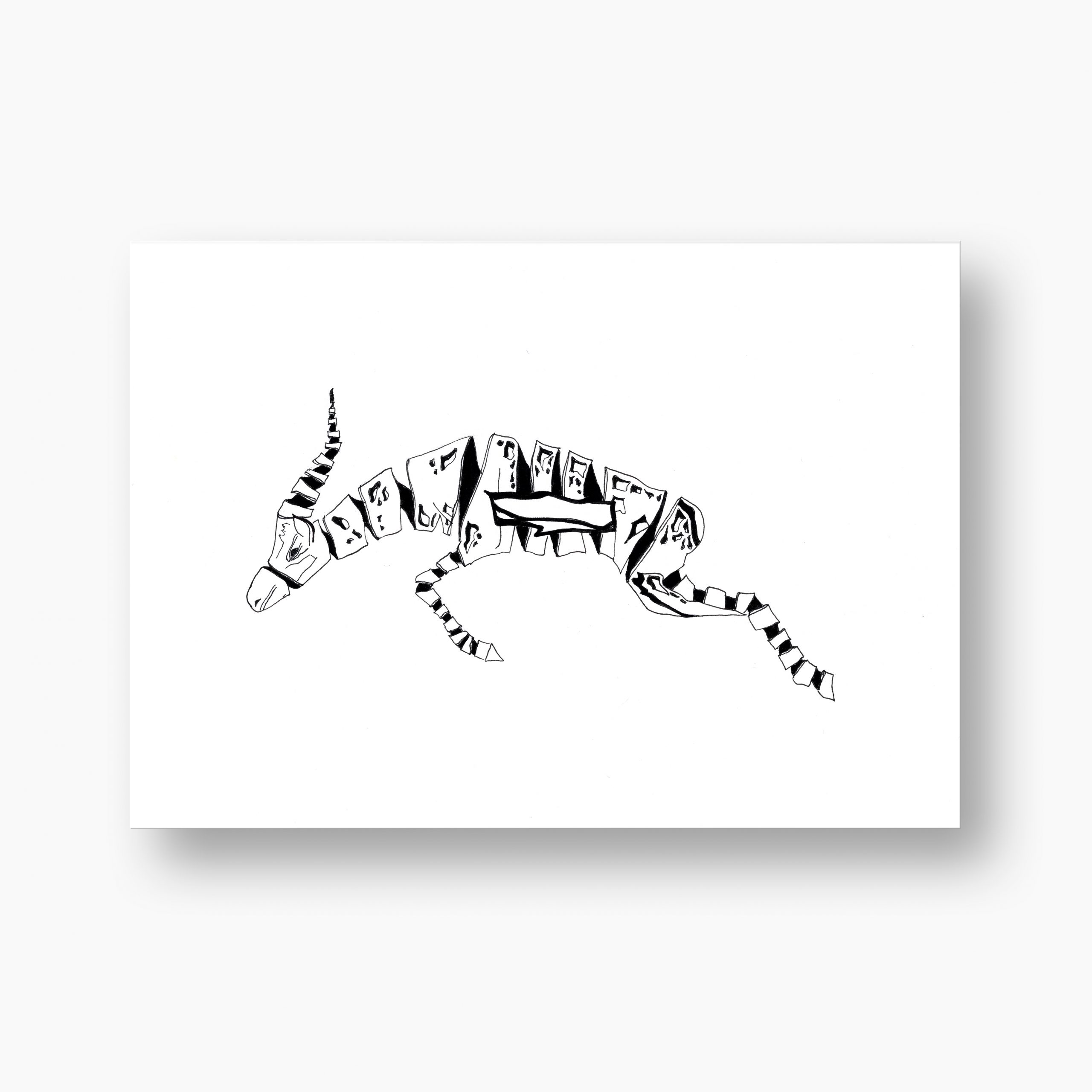 «Efímero» es la representación del arce, una figura que salta con gracia, pero cuya piel desgarrada revela la vulnerabilidad de su ser interno. Esta ilustración, realizada en tinta negra, captura la esencia de lo temporal y lo frágil, invitando al espectador a reflexionar sobre la dualidad de la existencia: la belleza del movimiento y la inevitabilidad de la descomposición.
