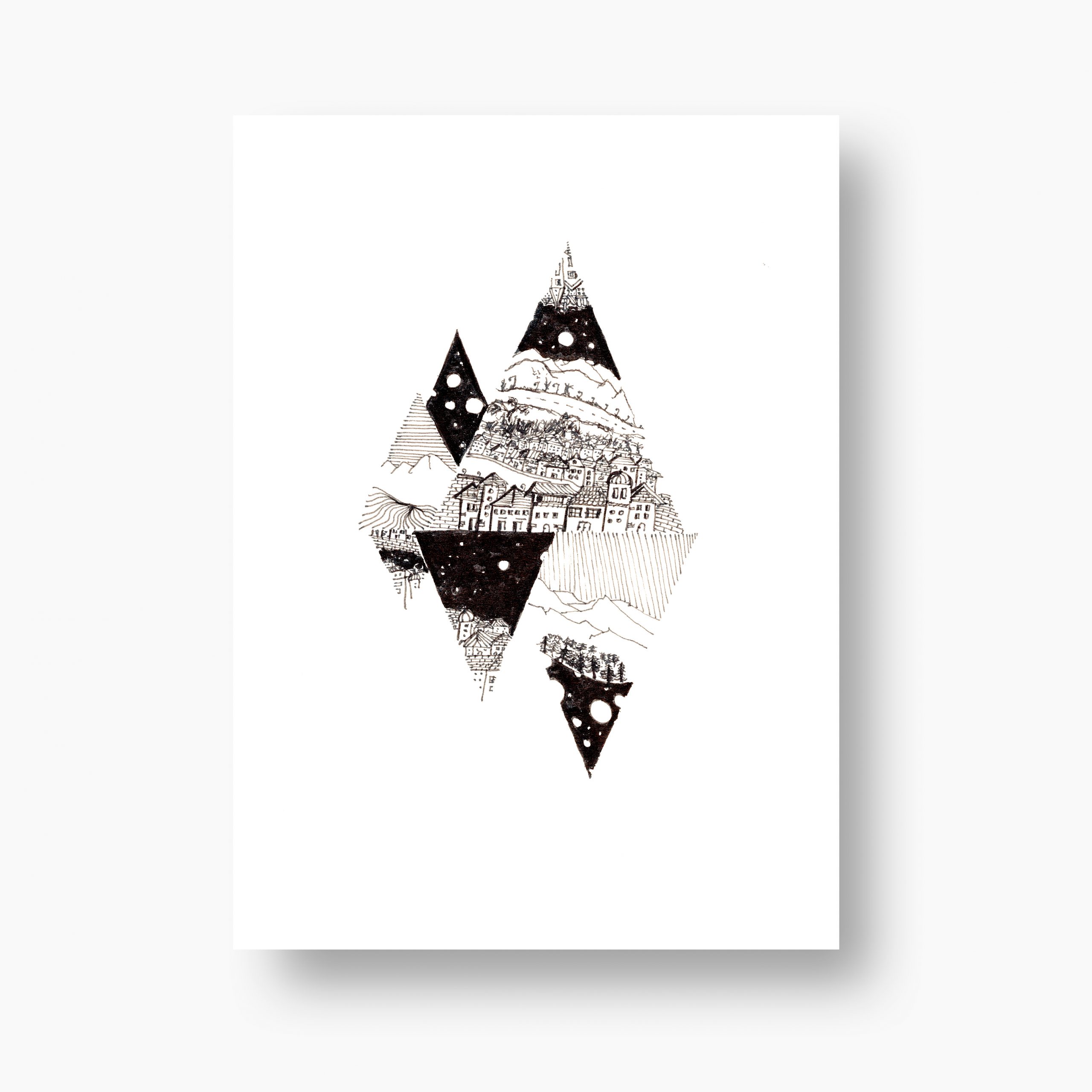 Etiquetas fineliner, naturaleza, paisajes, print, triángulos, vertical